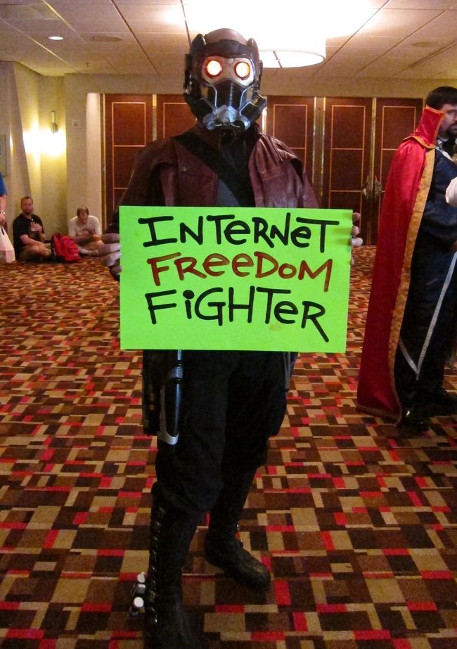 Over Labor Day weekend, more than 75 cosplayers at Dragon Con became Internet freedom heroes for real, using their fantastic costumes to highlight how anonymity and privacy are crucial to free expression.