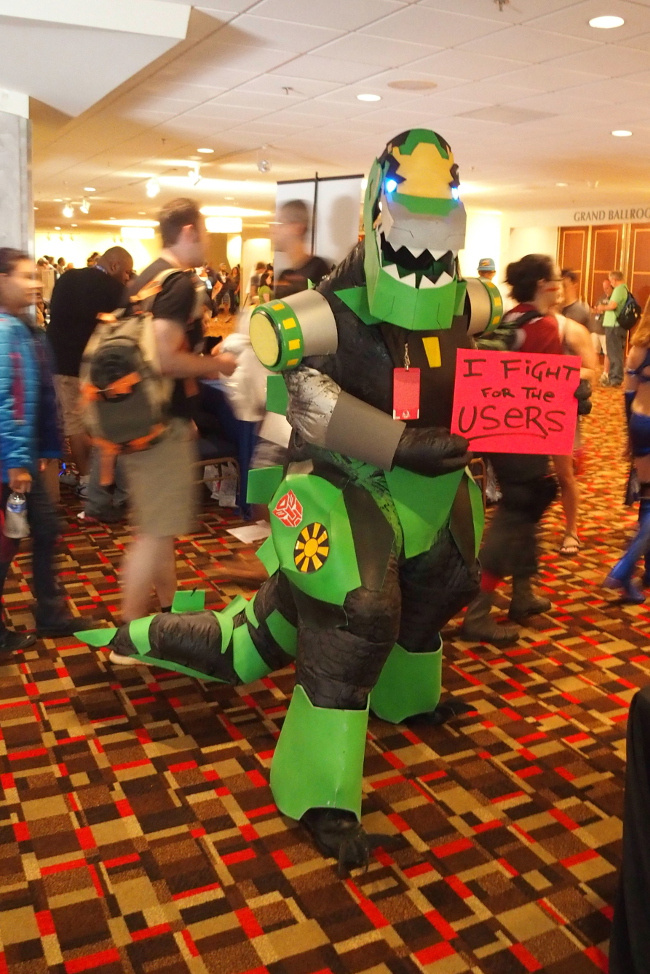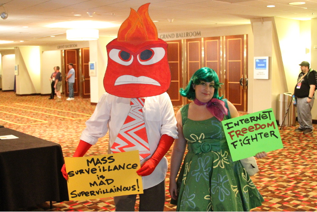 More than 120 cosplayers posed for privacy and free speech at EFF and Access Now's Project Secret Identity station at Dragon Con. Over the Labor Day weekend, we were visited by Scarecrow and "Weird Al," Marvel Zombies and self-designed Steampunk characters, and heroes and villains from anime and video games—all with a common interest in defending Internet freedom.