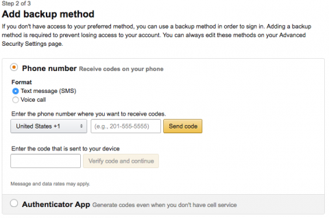 Before you finish set-up, you’ll see two final notes from Amazon. First, note that some tablets and other mobile devices will not support a separate screen for 2FA. When that’s the case, you can “append” your verification code to the end of your password as shown.