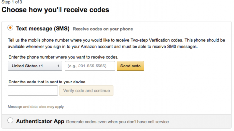 This page explains a bit about how 2FA works on Amazon. Click “Get Started.”