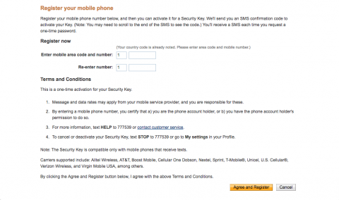 Enter and confirm your phone number at which you can receive texts. After reviewing the terms and conditions, click “Agree and Register.”