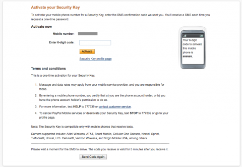 Shortly after you click, you’ll receive a text message with your verification code. Enter it and click “Activate.”