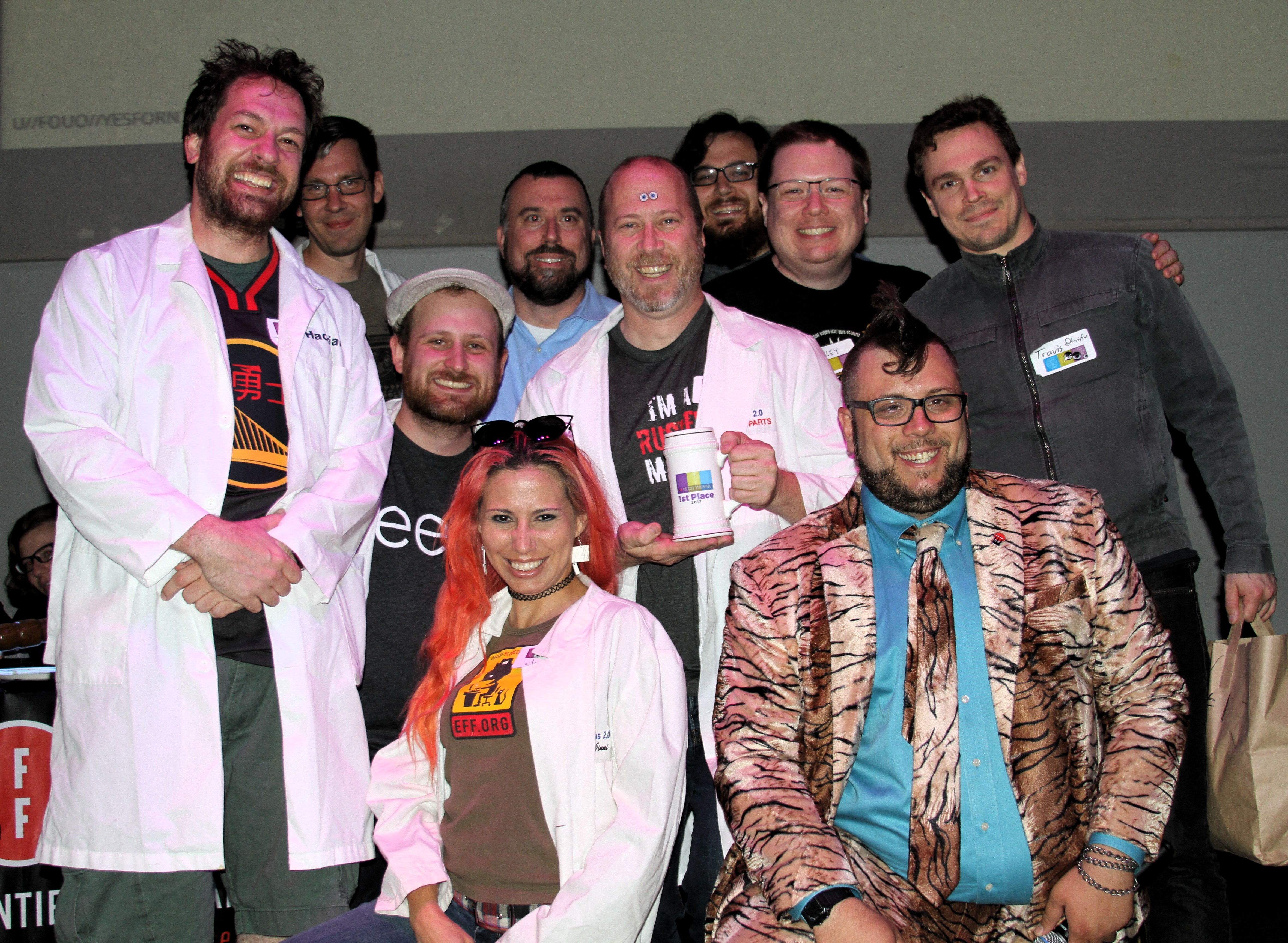 The twelve teams competed valiantly, but in the end it was a band of digital rights do-gooders known as The Labcoats who reigned supreme, receiving the First Place Tech Trivia Cup and an EFF swag superpack. Second Place honors went to Randos in the Light followed closely by Riven Mirror. Congratulations to the esteemed winners!