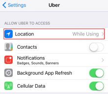 6. Here, change your location setting to "While Using" or "Never". Note that "Never" will require you to manually enter your pickup address every time you call a ride.
